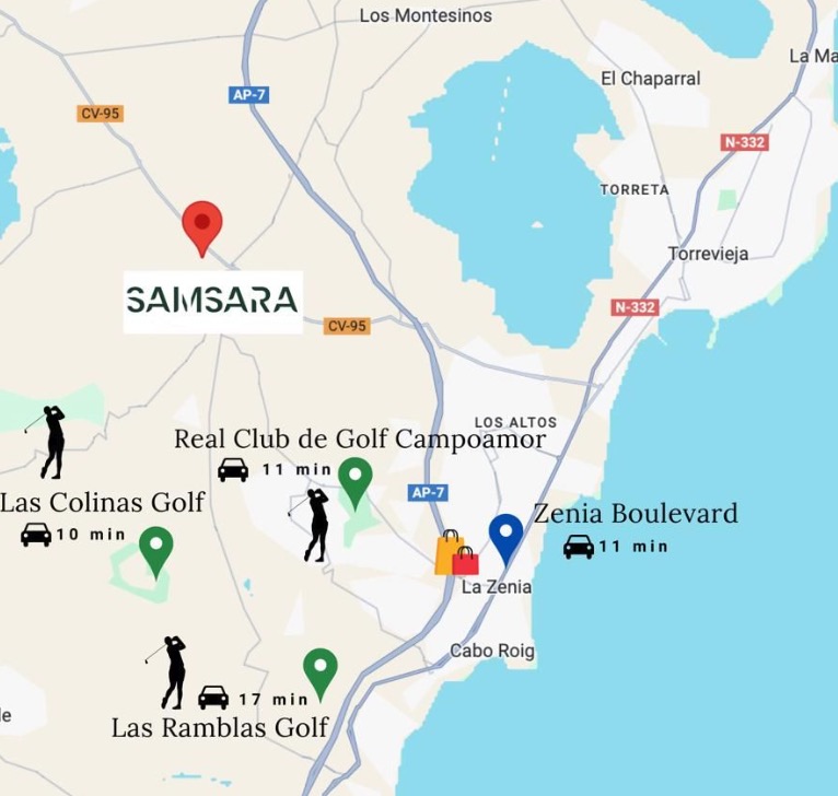 W centrum Orihuela Costa, w prowincji Alicante, znajdziesz projekt bungalowów Samsara Apartment. W pobliżu znajdują się dzielnice Villamartin, Campoamor i Cabo Roig. Po południowej stronie Costa Blanca leży Playa Flamenca, siedziba La Zenia, najbardziej znanego centrum handlowego regionu, i Orihuela Costa. Po stronie północnej leży Mar Menor i światowej sławy La Manga. Wielu golfistów przyjeżdża w te rejony każdego roku, aby grać na wielu dostępnych polach golfowych. Mikroklimat tego obszaru, który może pochwalić się 300 słonecznymi dniami w roku, to kolejny atut. Jako dodatkowy bonus, większość sklepów, barów i restauracji w regionie jest otwarta przez cały rok, a ceny są tu zazwyczaj niższe niż w innych nadmorskich częściach Hiszpanii.